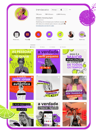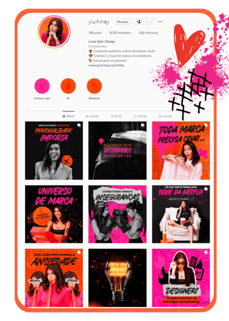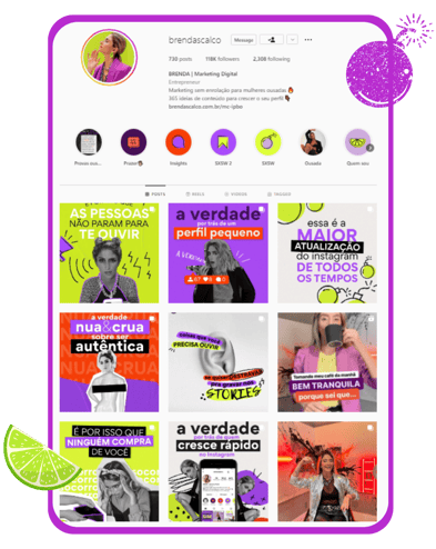 A good example of this is the Instagram profiles of Marina Campello and Agência Violet. Marina, a fashion social media, uses more elegant minimalism, with sober tones and thin typography and almost always with a serif.