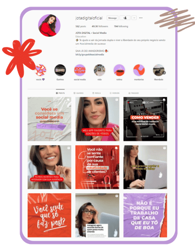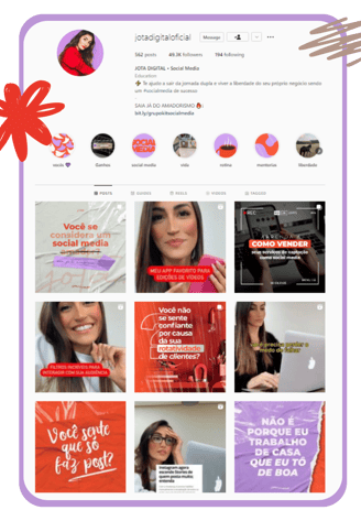 Meanwhile, the Instagram profile of the social media Jota Digital is surrounded by a mix of lilac and a strong orange